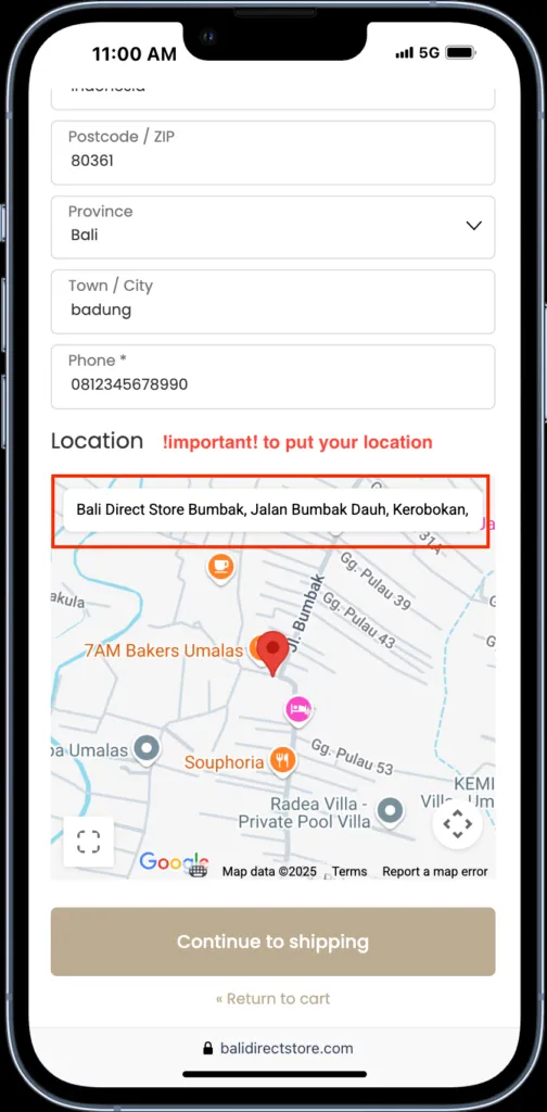 Note that shipping cost based on distance you inputing on map to our Warehouse.