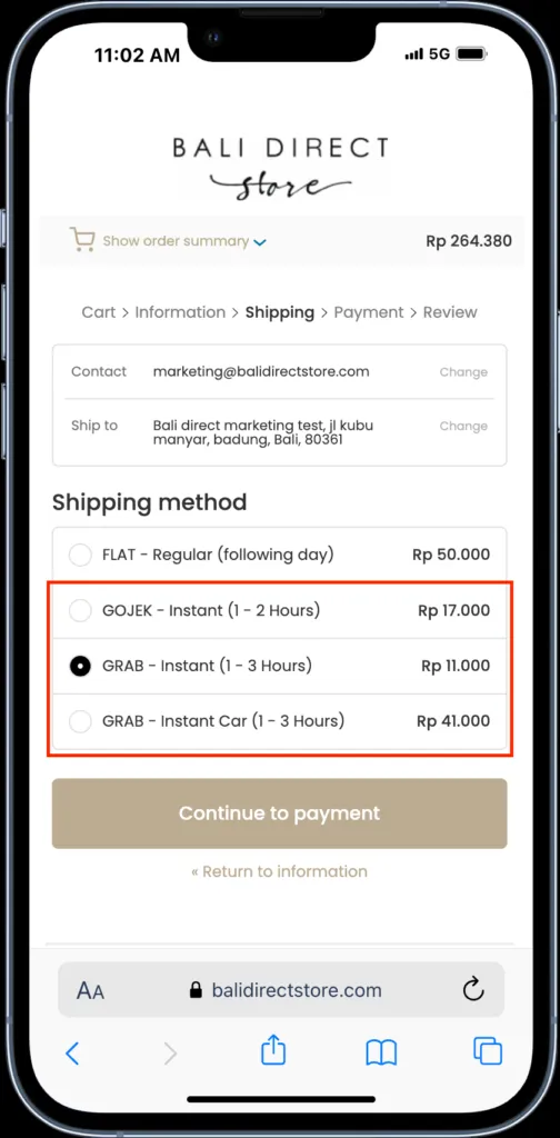 Important to making sure your cart only include Instant Delivery items & remove “Regular Delivery Only”.