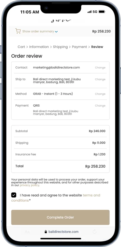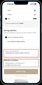Fill Payment Information, billing address, Order notes & Google Map URL.