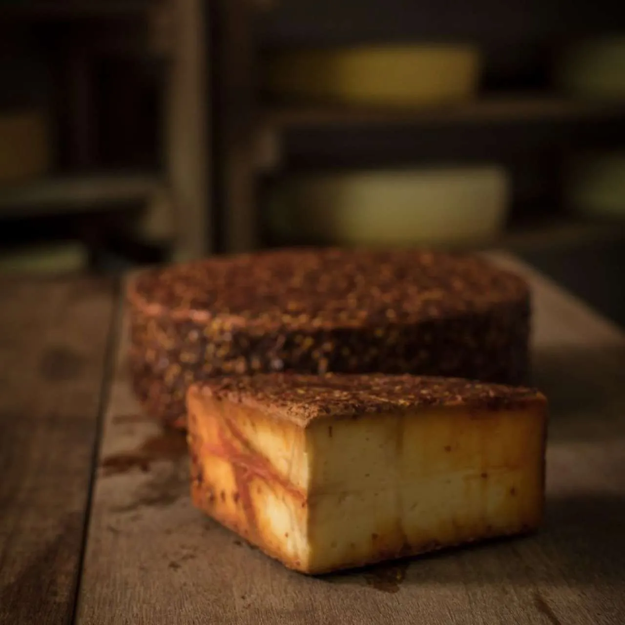 Original from Raclette cheese washed with chili flakes and olive oil every day. This cheese’s shelf life is 2 months or longer. Aging time minimum 2 months.