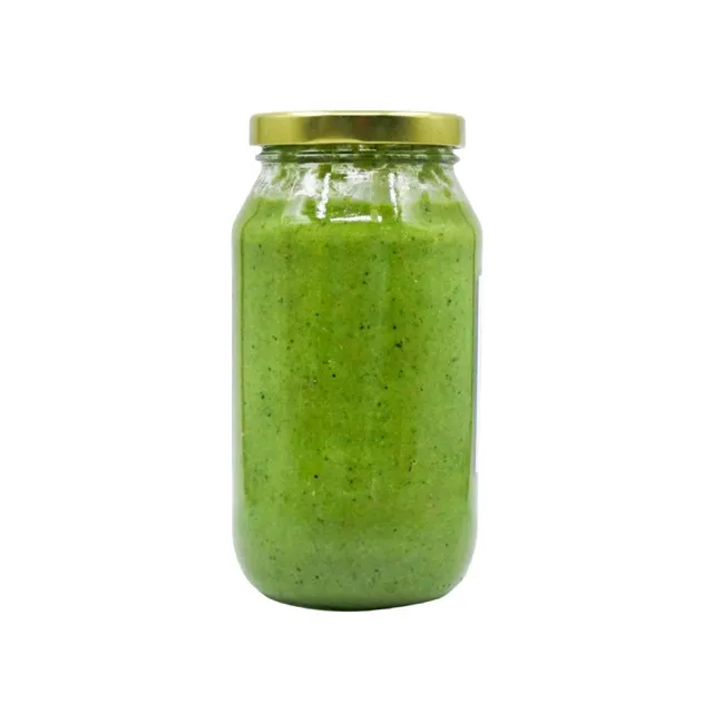 Ingredients: Broccoli, Basil, Spinach, Zucchini, Onion, Garlic, Veggie Broth, Coconut Cream, Olive oil, Ginger, Pepper, Salt. Recommendation: Can be used as a spread, a dip, a dressing, and serves as a key ingredient in many dishes.