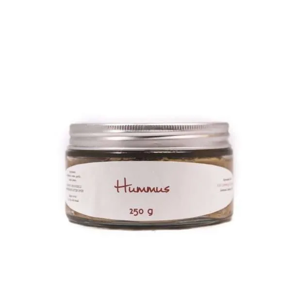 Ingredients: chickpeas, cumin, garlic, tahini, lemon, olive oil, salt.