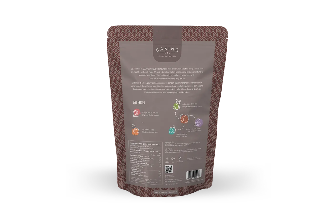 Baking Co. is a food production facility based in Sanur. The company was started to fill a gap in Indonesia where a variety of good quality baked Italian products completely handcrafted with Pasta Madre (sourdough) are missing. We believe in sourcing the best possible ingredients, locally when available, to create a community that will promote the quality of products around us. We strive to follow Italian tradition and at the same time to innovate with flavors that embrace local produce, culture, and taste. We pride ourselves in using only natural raw ingredients: No chemicals, No artificial flavoring, No coloring, No pre-mixes, and No additives. Quality is at the center of everything we do.
