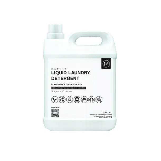 Maskit Liquid Laundry Detergent is designed for washing clothes on a household scale or for laundry businesses. It utilizes natural, biodegradable surfactants, making it environmentally friendly and safe for sensitive skin.