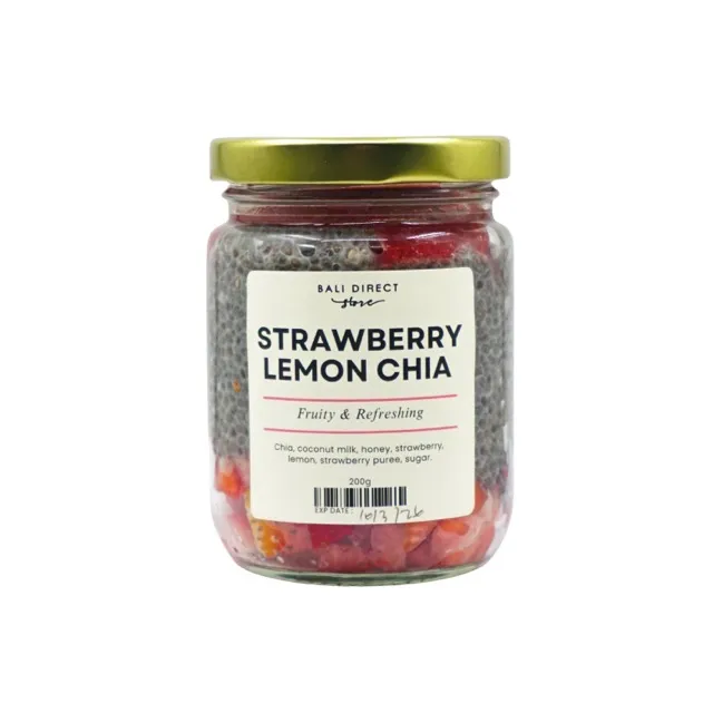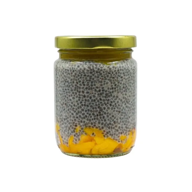 Ingredients: Chia seed, Coconut milk, Honey, Coconut flakes, Almond choped, Pumpkin seed, Mango jam, Sugar, Lemon juice.