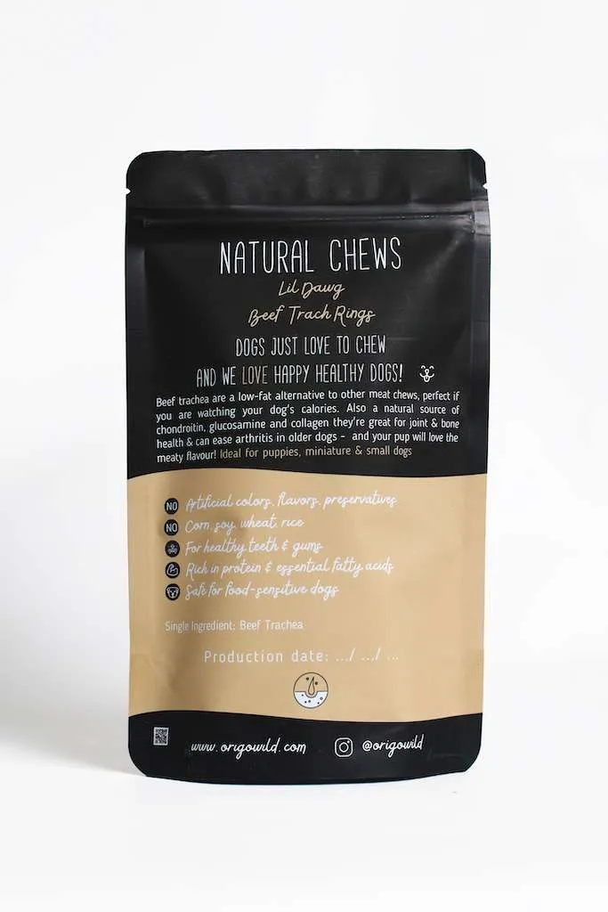 Beef trachea are a low-fat alternative to other meat chews, perfect if you are watching your dog’s calories. Also a natural source of chondroitin, glucosamine and collagen they’re great for joint & bone health & can ease arthritis in older dogs – and your pup will love the meaty flavour! Ideal for medium & large dogs. Prepared in tubular sticks for bigger pup-jaws, this crunchy medium-strength chew is an all-natural product and is a highly digestible grain free alternative to rawhide chews – suitable for medium and large dogs with ‘Big Dawg’ appetites!