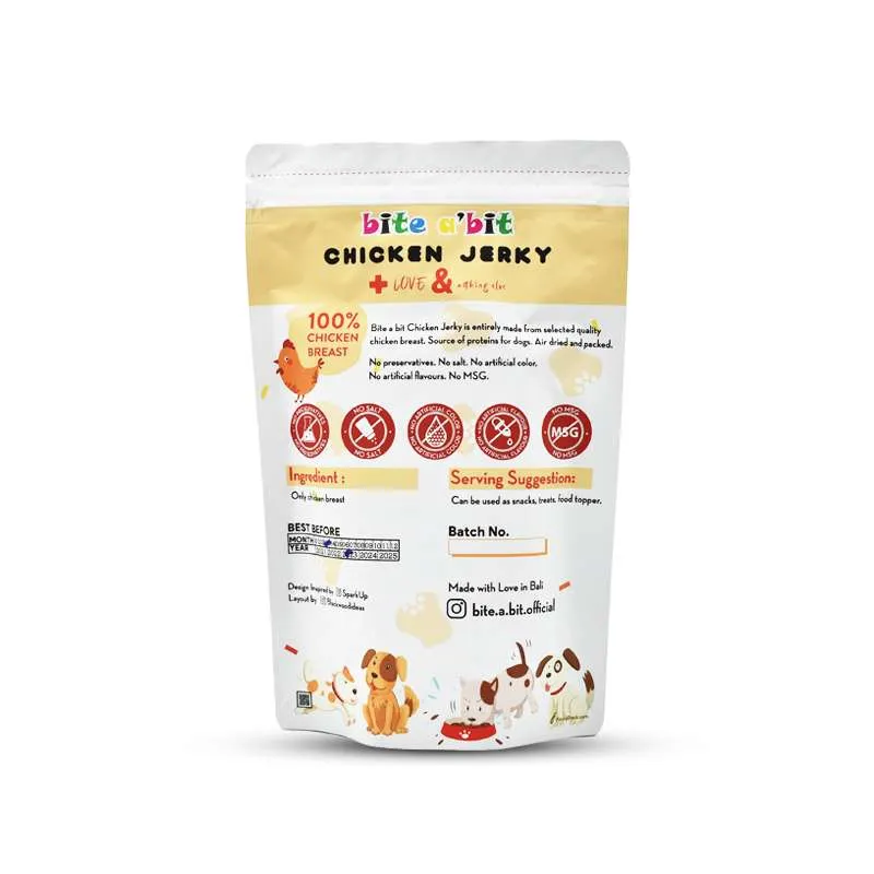 Pet Chicken Jerky is entirely made from selected quality chicken breast and. Source of proteins for dog. Air dried and packed, no preservatives, no salt, no artificial color, no artificial flavours, no MSG.