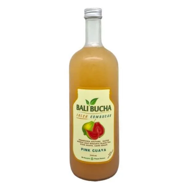 Ingredients: Kombucha Culture, Water, Whole Leaf Organic Black Tea, Cane Sugar, Pink Guava.
