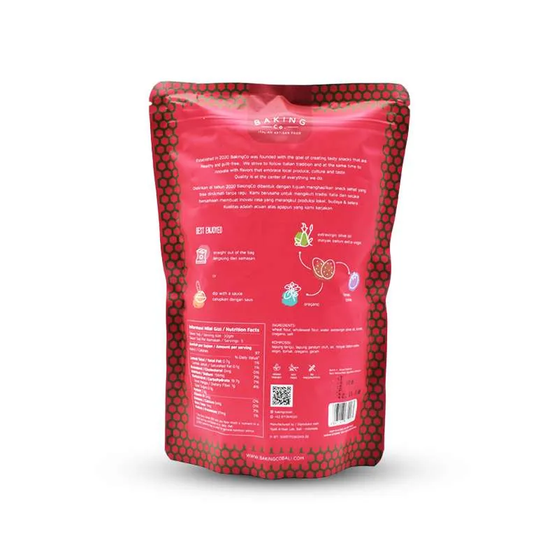 Ingredients: wheat flour, whole wheat flour, water, extra-virgin olive oil, tomato, oregano, and Salt from Amed.