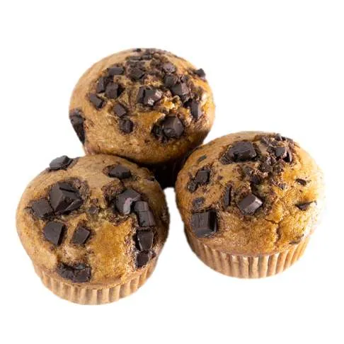 Made with banana puree & dark decadent chocolate, these fluffy but moist muffins are a favorite amongst our customers.