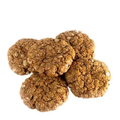 Our crunchy on the outside & soft on the inside Oat Cookies are made with rolled oats and maple syrup. With no refined sugar, for a nice but not so naughty cookie!